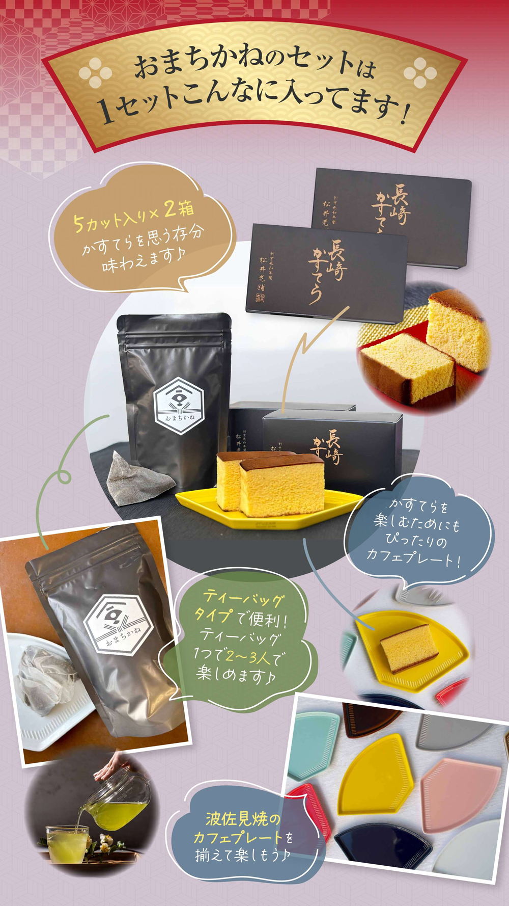 2ヶ月に1回、人気のかすてら1種と、合わせたお茶、波佐見焼のカフェプレート1色がご自宅に届くサービスです。 限定のセットですので季節により、他では手にすることができない商品となっております。 歴史と伝統が詰まったセットをぜひお楽しみください。